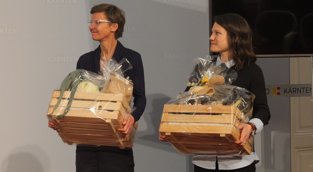 Christian Salmhofer, Geschäftsführer des Klimabündnis Kärnten, sagte ein paar Worte und Elke Müllegger und Petra Obernosterer vom Klimabündnis Kärnten gaben einen kurzen Rückblick auf den Lehrgang, bevor dann Landesrätin Beate Prettner und Landesrat Peter Reichmann die Zertifikate verliehen.